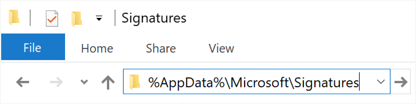 Opnið eftirfarandi slóð í File Explore og færið nýju undirskriftina inn í þá möppu.